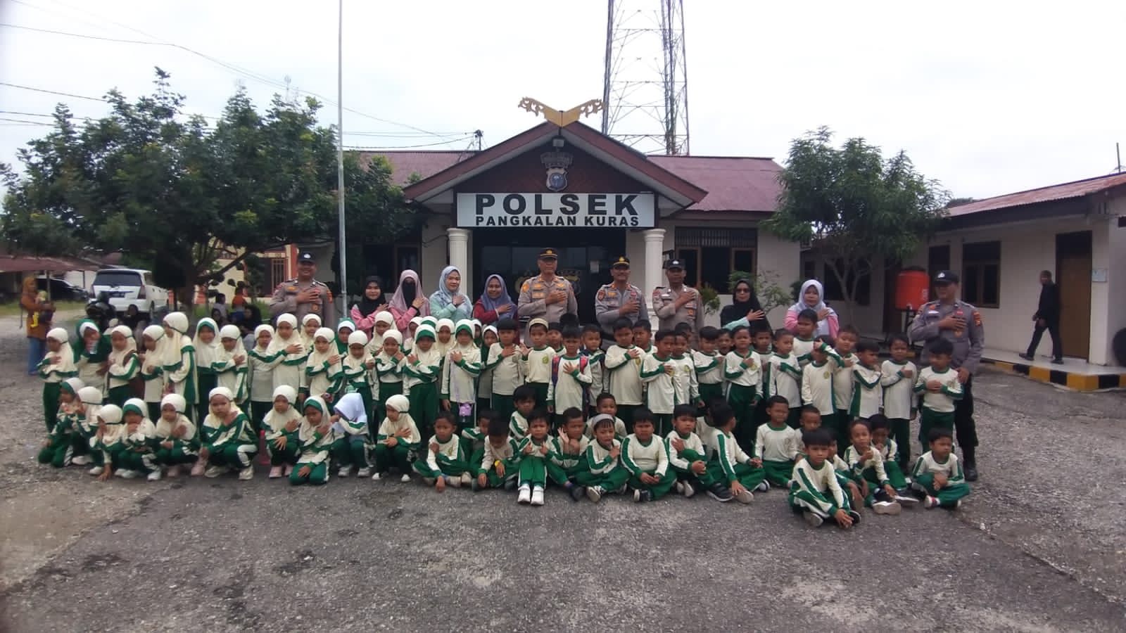 Kapolsek Pangkalan Kuras AKP Rinaldy Parlindungan, S.H., bersama Kanit Samapta AKP Haris dan Kanit Binmas AKP Yandri beserta anggota, menyambut langsung para siswa dan guru. Kunjungan ini bertujuan memperkenalkan anak-anak pada lingkungan kepolisian serta peran dan tugas anggota Polri dalam menjaga keamanan masyarakat.