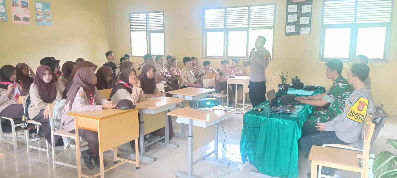 Selanjutnya, Wakapolsek Linge, Aiptu Herliandi, memaparkan materi tentang hukum dan kamtibmas. Ia menekankan pentingnya memahami aturan dan perundang-undangan yang berlaku agar siswa mampu bersikap disiplin, tertib, serta menghargai norma sosial di lingkungan masyarakat.