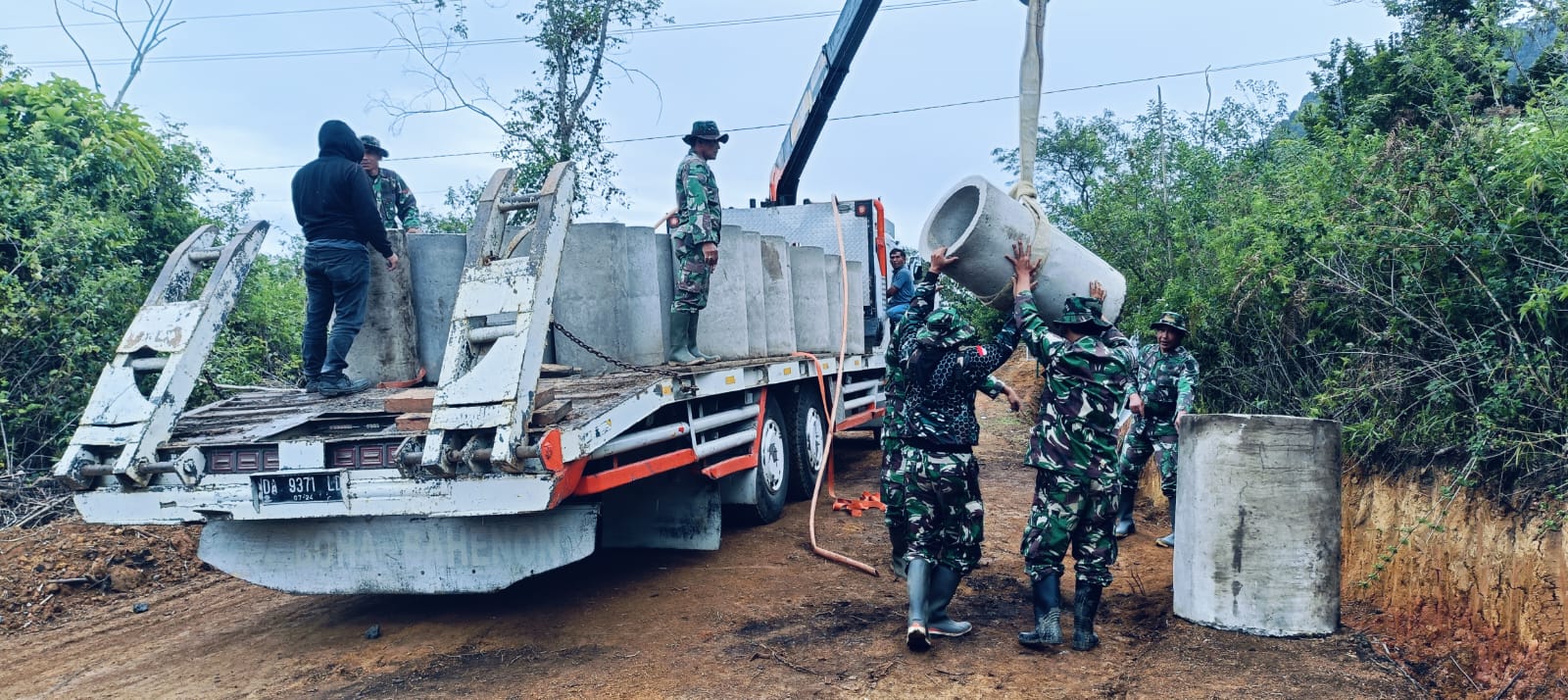 Semangat gotong royong kembali terlihat di Desa Kute Keramil, Kecamatan Linge, Kabupaten Aceh Tengah, Senin (27/10/2025). Anggota Satgas TNI Manunggal Membangun Desa (TMMD) ke-126 Kodim 0106/Aceh Tengah bersama warga setempat bekerja keras menurunkan gorong-gorong yang akan digunakan untuk pembangunan saluran drainase.