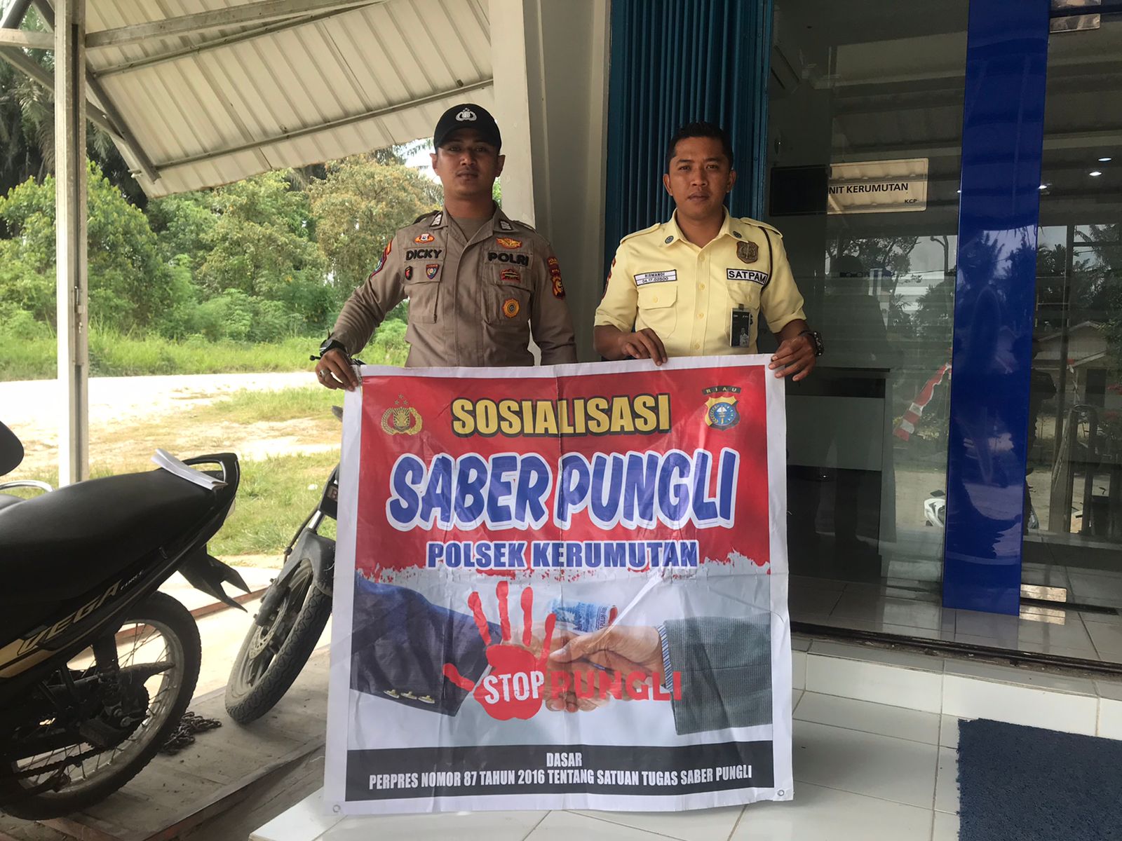 Dalam upaya mendukung pemberantasan pungutan liar, Polsek Kerumutan melaksanakan sosialisasi Saber Pungli kepada masyarakat, Rabu pagi (27/08/2025). Kegiatan ini merupakan tindak lanjut dari Peraturan Presiden Nomor 87 Tahun 2016 tentang Satuan Tugas Sapu Bersih Pungutan Liar.