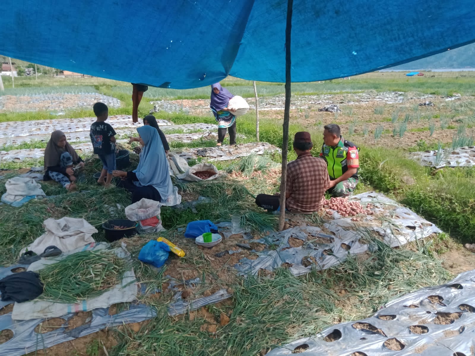 Dalam rangka mendukung program pemerintah di bidang Swasembada pangan Babinsa Koramil 01/lut tawar Koptu Bintoro bantu petani Marwan (45) memanen bawang merah di desa kenawat kec.lut tawar Kab, Aceh Tengah.jumat (11/10/24)