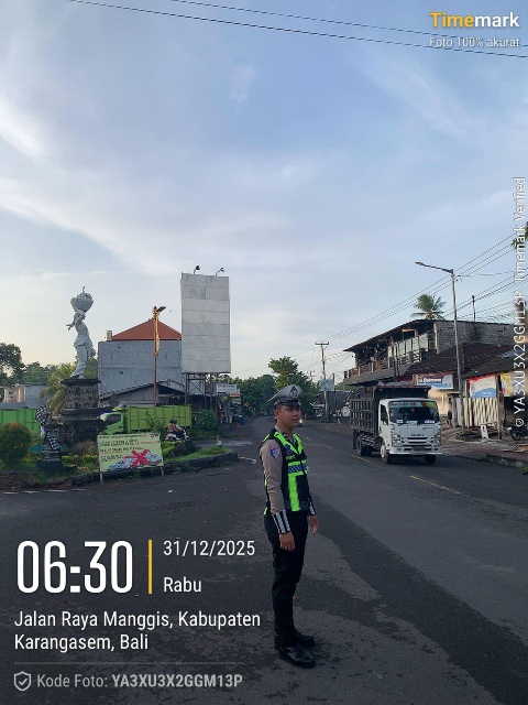 Personil Turjawali dari Kepolisian Resor Karangasem kembali menunjukkan kepedulian terhadap keselamatan masyarakat. Pagi ini, mereka terlihat sigap membantu warga menyeberangi Jalan Achmad Yani yang padat, memastikan lalu lintas berjalan lancar dan aman. Pada hari Rabu, 31 Desember 2025.