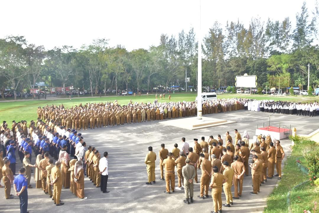 Wakil Bupati Aceh Tamiang, Ismail, SE.I memimpin Apel Akbar ASN perdana yang dilaksanakan di Lapangan Upacara Tribun Kantor Bupati, Senin, (24/2/25).