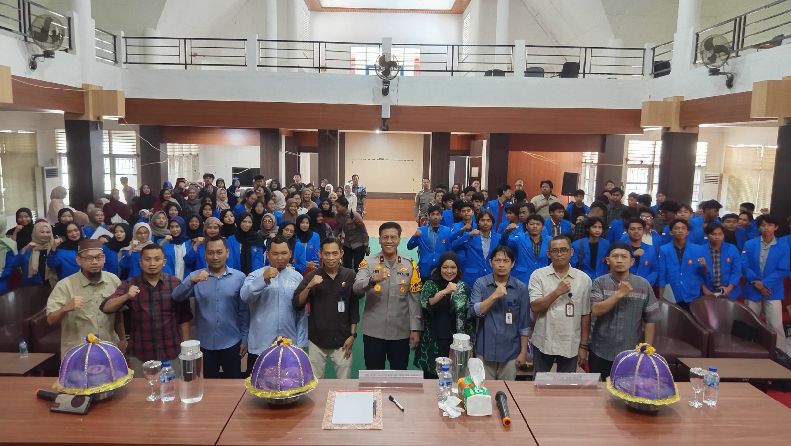 Acara tersebut sebagai bentuk sinergitas antara Polri dan Perguruan Tinggi (PT) untuk membangun kesadaran hukum dikalangan mahasiswa. Turut hadir Dekan Fakultas Tehnik Ir. Arham Adam S. T,. M.Sc, Dosen serta mahasiswa dari lima jurusan fakultas teknik.