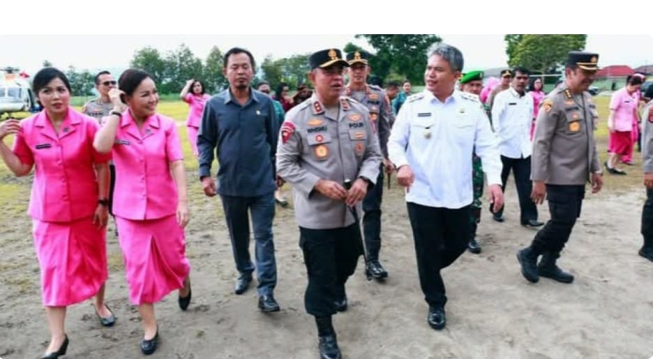 Wakil Bupati Tapanuli Utara Dr Deni Lumbantoruan, didampingi Ketua II Bidang Pendidikan dan Peningkatan Ekonomi Keluarga TP PKK Kabupaten Tapanuli Utara, Ny Lisa Deni Lumbantoruan Br Malau, menyambut kedatangan Kapolda Sumatera Utara, Irjen Pol Whisnu Hermawan Februanto, bersama Ketua Bhayangkari Daerah Sumatera Utara dalam kunjungan kerja di wilayah Kabupaten Tapanuli Utara, Rabu (30/04/2025).