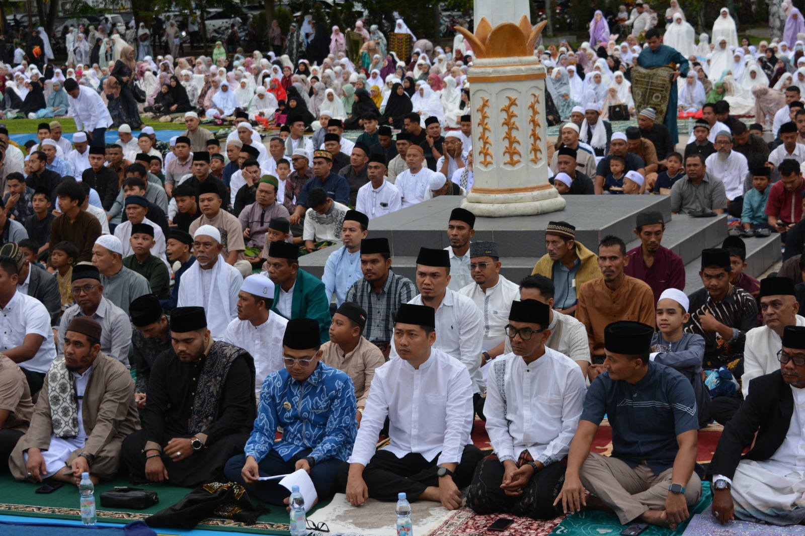 Wali Kota Langsa Jeffry Sentana S Putra, SE, dan Wakil Wali Kota Langsa Muhammad Haikal Alfisyahrin, ST, bersama Forkopimda melaksanakan Ibadah Shalat Id Idul Adha berjamaah bersama ribuan masyarakat Lapangan Merdeka Kota Langsa.