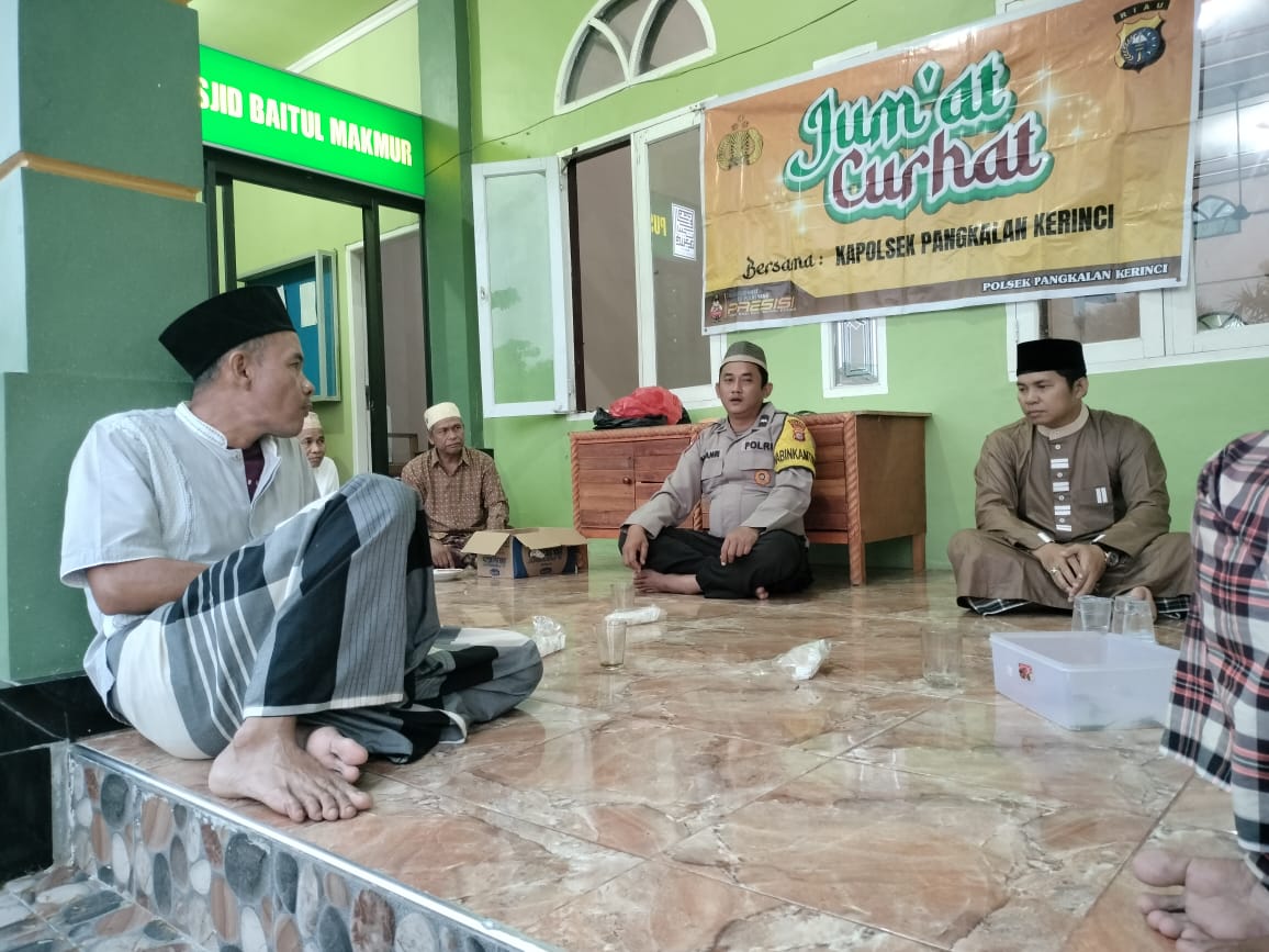 Kepolisian Sektor Pangkalan Kerinci menggelar kegiatan Jumat Curhat pada Jumat pagi, 4 April 2026, di Masjid Baitul Makmur, Dusun Timur, Desa Makmur, Kabupaten Pelalawan. Kegiatan yang dimulai sekitar pukul 05.30 WIB ini menjadi wadah komunikasi langsung antara masyarakat dan aparat kepolisian.