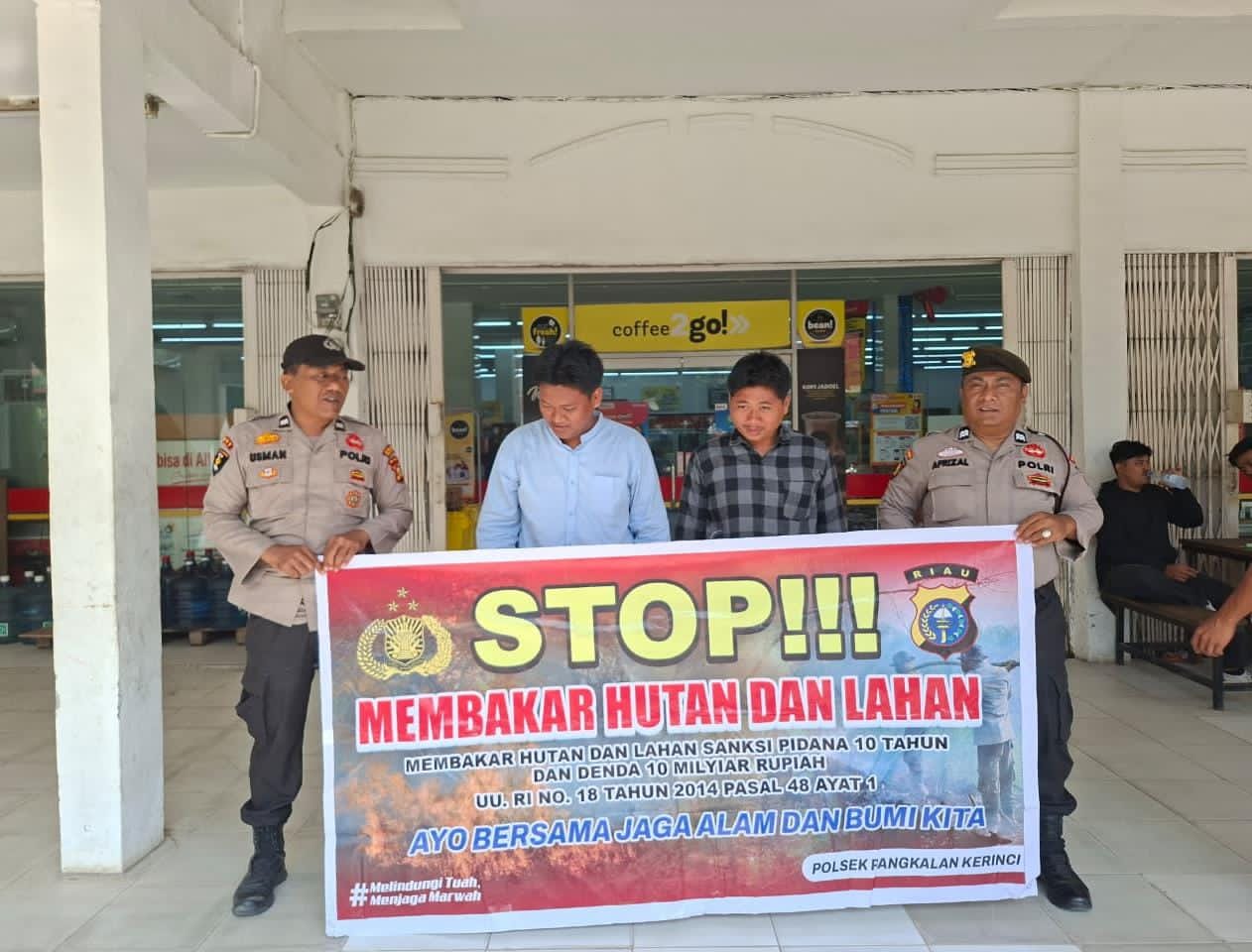 Jajaran Polres Pelalawan melalui Polsek Pangkalan Kerinci terus meningkatkan kewaspadaan terhadap potensi kebakaran hutan dan lahan (Karhutla) dengan melaksanakan patroli rutin di wilayah rawan serta mensosialisasikan Maklumat Kapolda Riau tentang larangan membuka lahan dengan cara membakar.