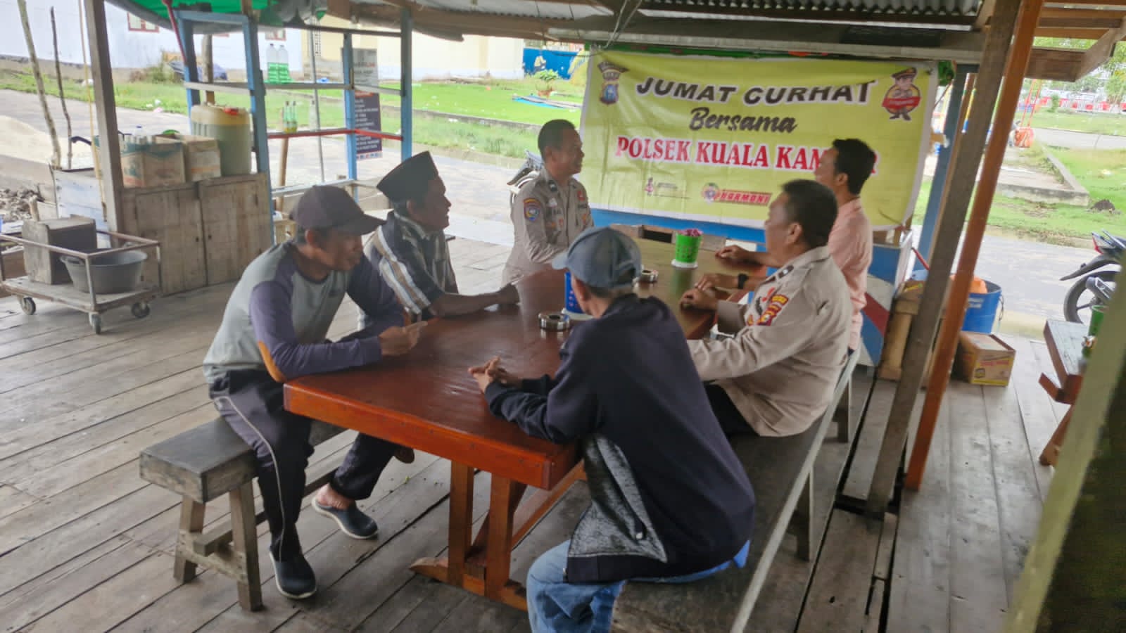 Polsek Kuala Kampar, Polres Pelalawan, melaksanakan kegiatan Jum’at Curhat pada Jumat (2/1/2026) sekitar pukul 08.30 WIB di Amera Mart, Kelurahan Teluk Dalam, Kecamatan Kuala Kampar.