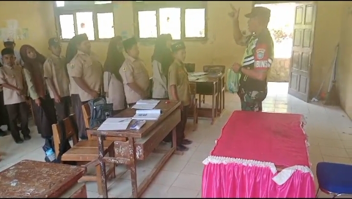 Wujudkan rasa kecintaan generasi muda kepada NKRI, Babinsa Koramil 05/Linge memberikan pembekalan Bela Negara kepada puluhan siswa siswi