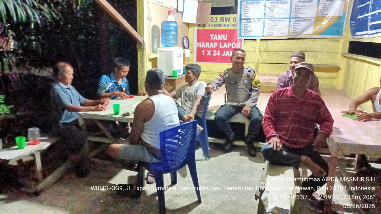 Dalam rangka menjaga stabilitas keamanan dan ketertiban masyarakat (Kamtibmas), Bhabinkamtibmas Desa Pematang Tinggi dan Beringin Makmur, Aipda Masnur, S.H., melaksanakan pengecekan serta sambang Pos Siskamling aktif di Desa Beringin Makmur, Kecamatan Kerumutan, Kabupaten Pelalawan pada Senin malam (26/5/2025).